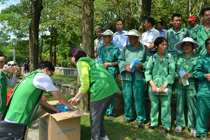 慰問結(jié)束后,紫薇社區(qū)工會工作人員和龍吉順總部工作人員,還開展垃圾分類倡導(dǎo)活動,向龍城公園游玩的市民發(fā)送了大量的環(huán)保購物袋和垃圾分類宣傳折頁,倡導(dǎo)垃圾分類,環(huán)境保護(hù)。