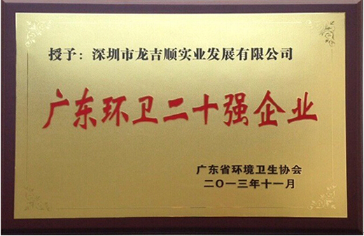 公司榮獲“廣東環(huán)衛(wèi)二十強(qiáng)企業(yè)”榮譽(yù)稱號
